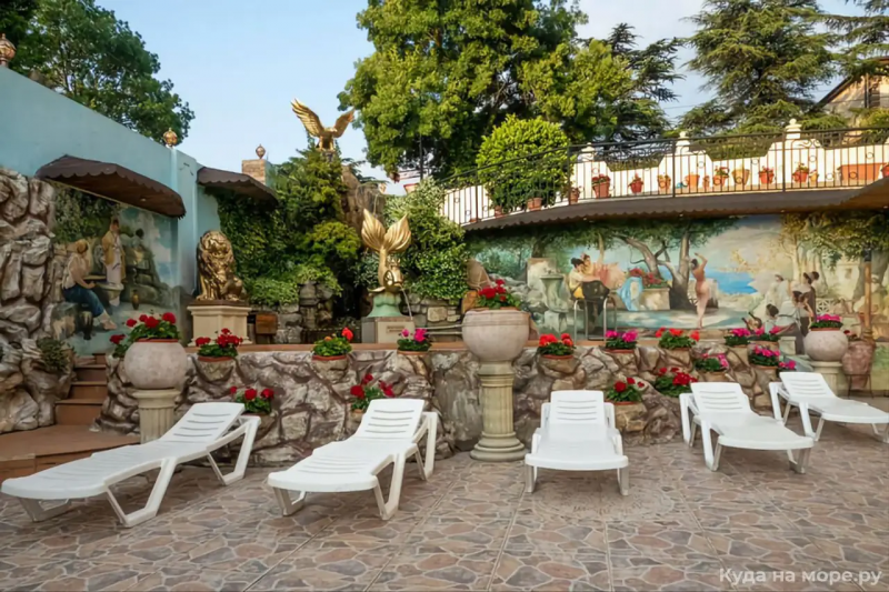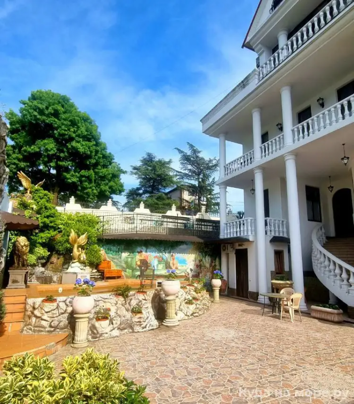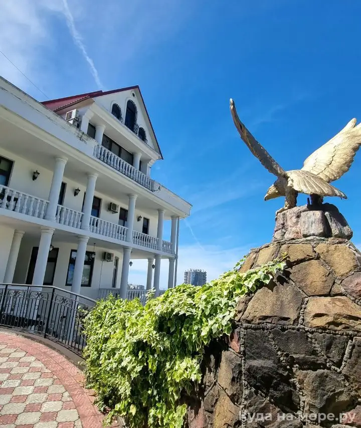 Самолетом до аэропорта Адлер, далее на автобусе № 105, 105а, 105с до остановки «Сбербанк», далее пересадка на автобус №17, 26, 30, 35 до остановки «Санаторий Радуга», далее пройти 134 м до гостевого дома.