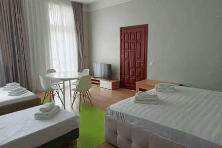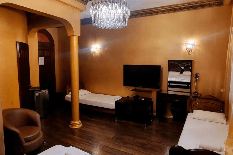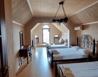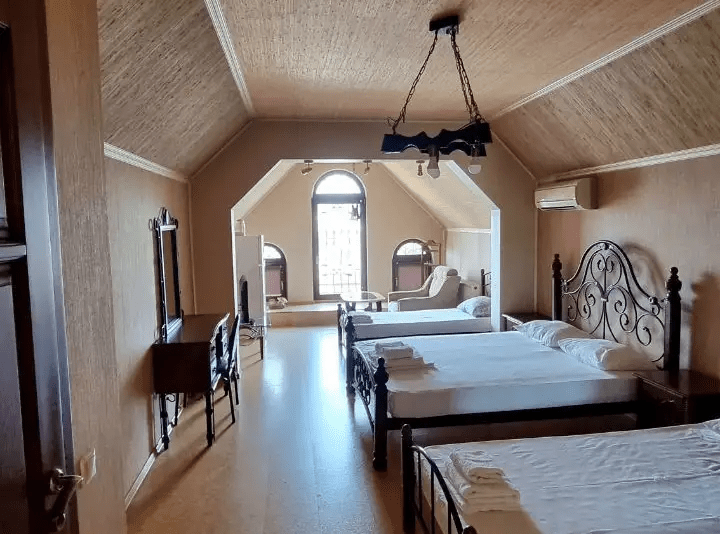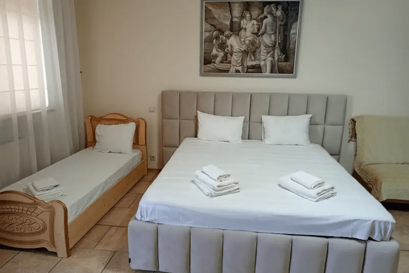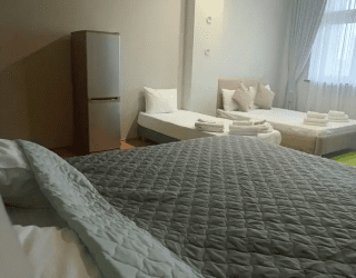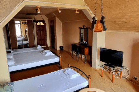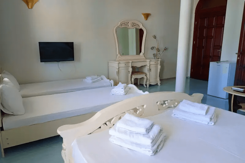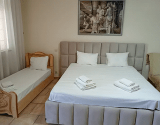 В гостевом доме представлены 4-местные номера нескольких категорий комфортности. Каждый номер оборудован современной мебелью, кондиционером, телевизором, холодильником, санузлом с душем или ванной.